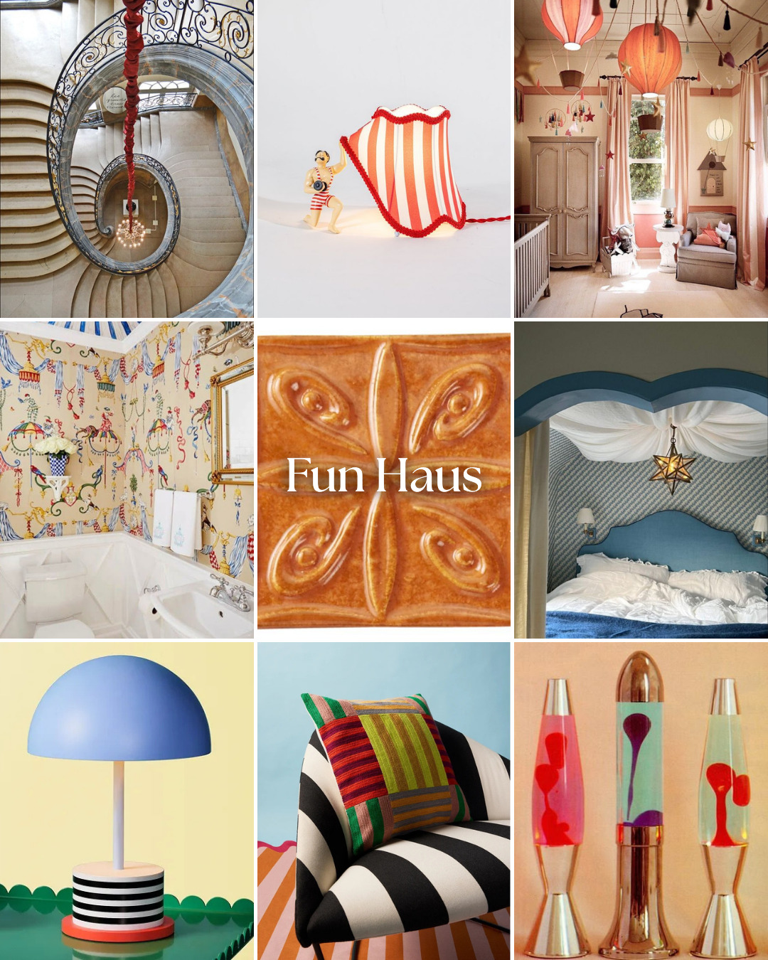 Ev dekorasyonunda eğlence zamanı. Çizgili tavanlar, beklenmedik renk kombinasyonları ve mizahi objelerle “ev = oyun alanı” anlayışı öne çıkıyor. Fun Haus, uzun süredir baskın olan sade ve nötr dekorasyon anlayışına güçlü bir alternatif sunuyor.
